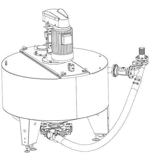Questo grazie all’azione della pompa centrifuga verticale rivestita in gomma, che nella sua funzione di ricircolo omogeneizza il prodotto eliminando eventuali grumi presenti nel materiale.